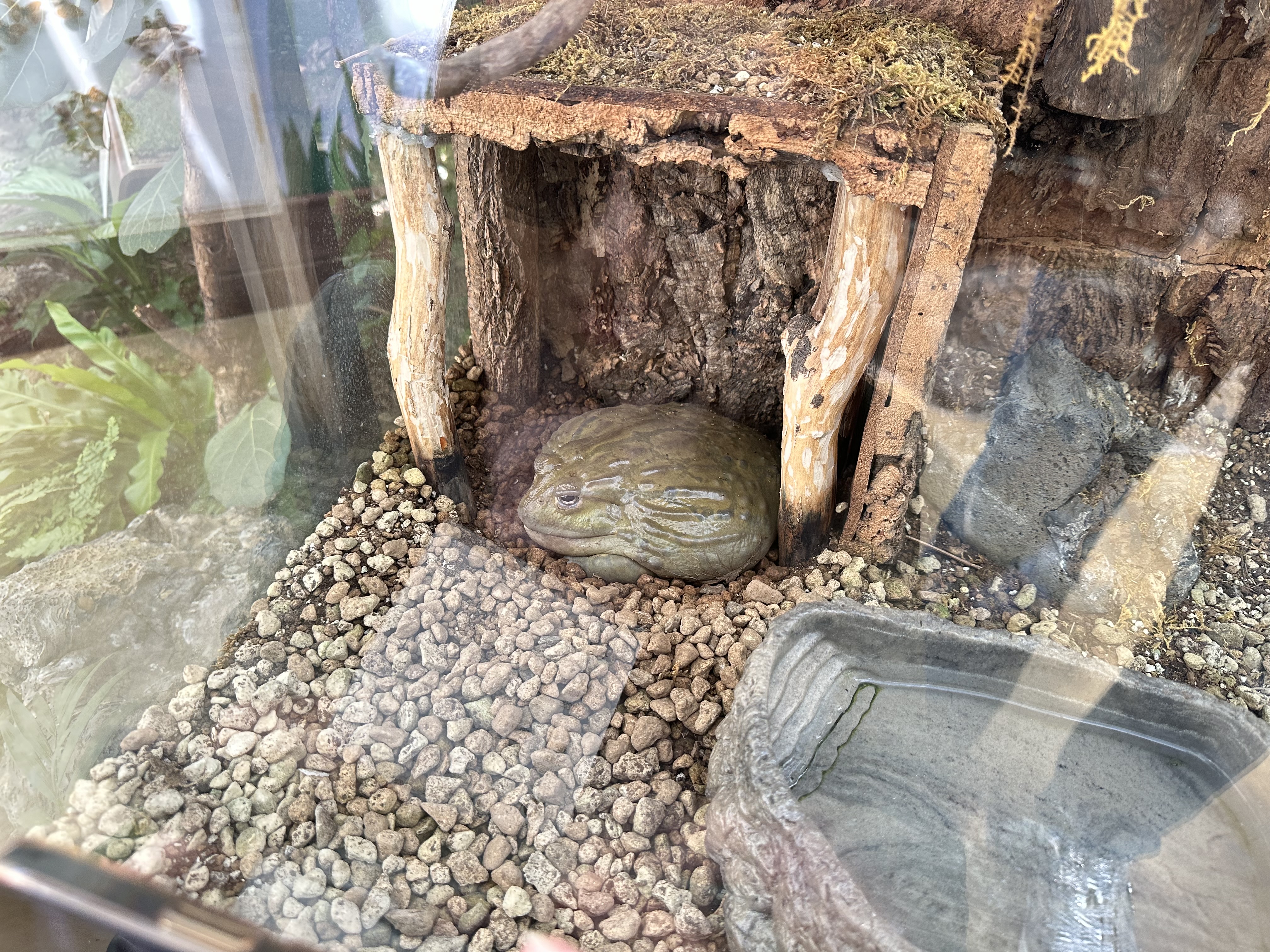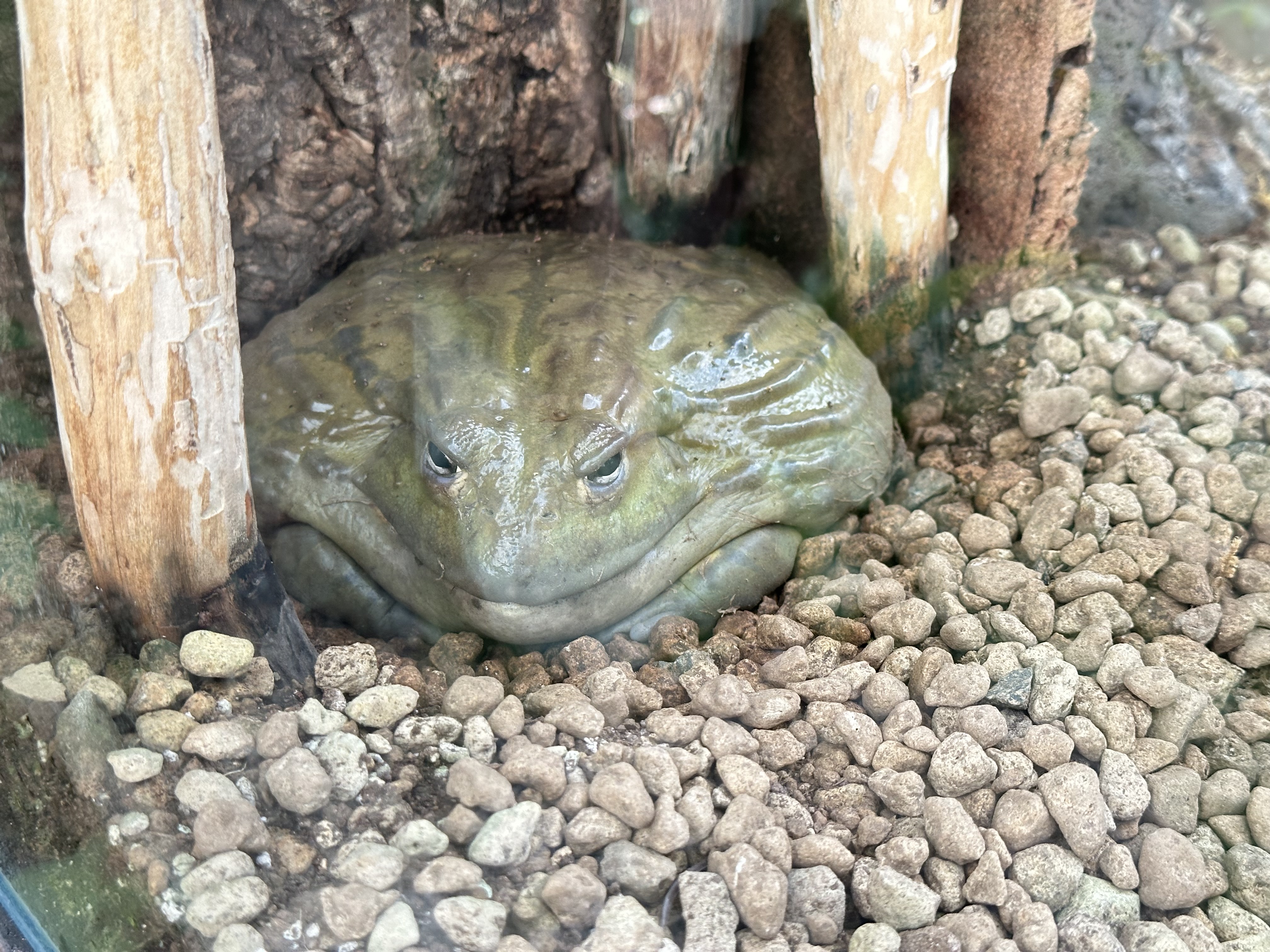 위압감과 압도감이 장난 아닙니다. 황소개구리가 이렇게 큰 녀석이었다니, 제가 보기에는 가만히 사람들을 구경하는 것 같습니다.