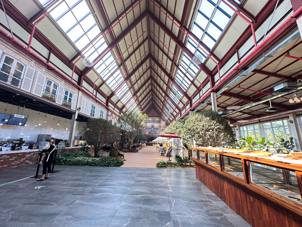 어디 테마파크에 온줄 알았어요. 창고형식으로 만들어진 건물이라 크기도 컸지만, 안에 공간도 매우 넓고, 중간에 있는 뼈대 같은 기둥도 잘 보이지를 않아서, 뻥 뚫린 듯한 시원함이 들어서자 마자 기분을 들뜨게 만듭니다.