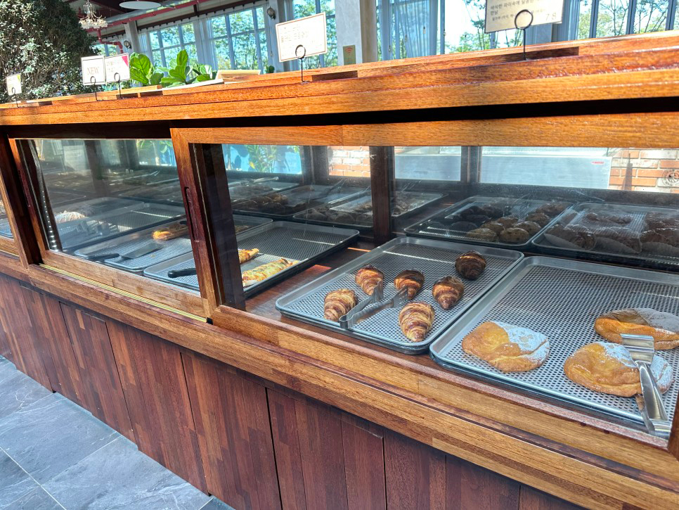 입구에서 들어서자 마자 오른쪽에 빵 진열장이 눈에 들어 옵니다.