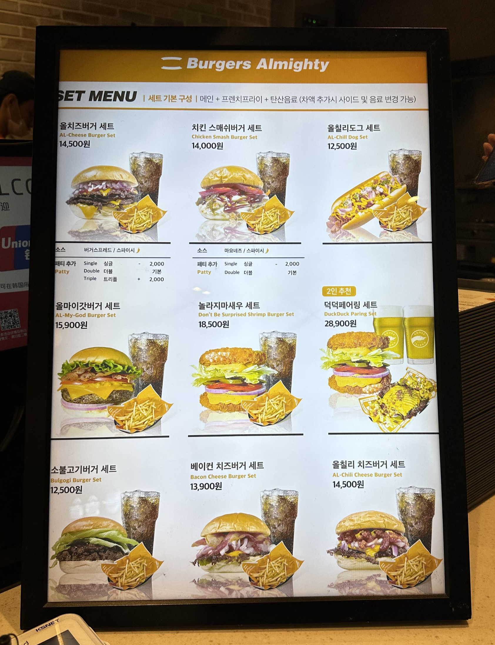개인적으로는 강남역에 들렸던 "파이브가이즈"와 "쉐이크쉑" 과 비교를 해보면, 비슷하던지 이곳 "버거 올마이티"가 약간 나은 듯한 맛과 느낌을 주는 것 같습니다.